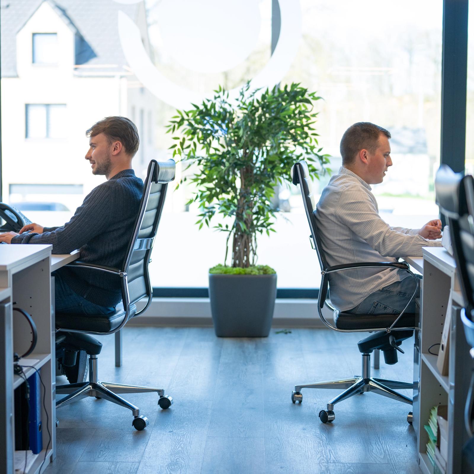 Nos bureaux de Mont-Saint-Guibert, c’est un vrai lieu de vie. Deux maisons rénovées, ultra lumineuses, avec une grande baie vitrée, des espaces de travail modernes, un bar interne, une salle détente avec kicker, et une terrasse baignée de soleil. On y travaille, on y échange, on s’y ressource. Jodoigne et Luxembourg complètent nos antennes pour être proches de nos clients et de nos équipes. Ce cadre, on l’a voulu à notre image : chaleureux, pro et inspirant.