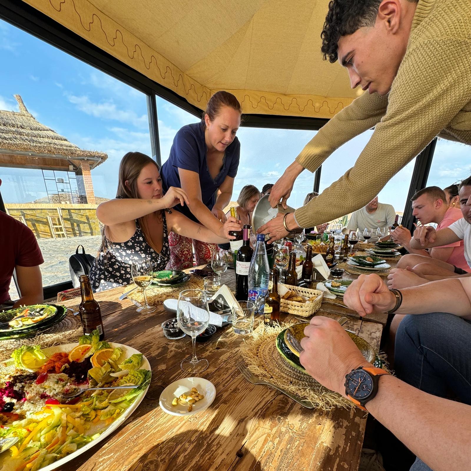 À midi, dès que le soleil est de la partie, on mange ensemble sur la terrasse. Et le vendredi ? C’est pain saucisse ou BBQ, comme il se doit. Mais ce qu’on retient vraiment, ce sont les moments forts : les tournois de padel, les week-ends d’équipe, les petites aventures… jusqu’à Marrakech.